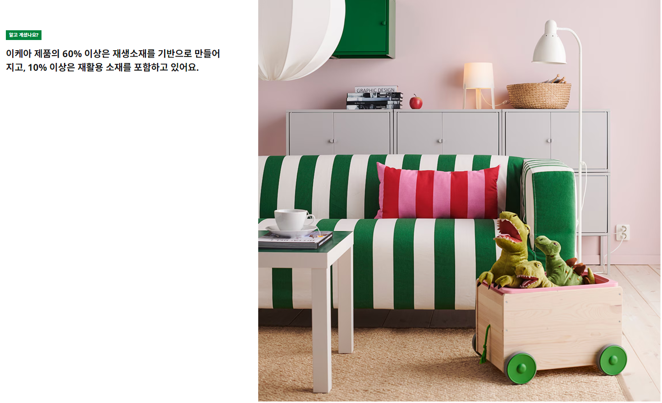 출처: https://www.ikea.com/kr/ko/this-is-ikea/climate-environment/becoming-a-circular-business-pub40dc71c0/ 이케아는 지속 가능한 소비 모델을 도입하며 탄소중립을 목표로 하는 기업 중 하나입니다.